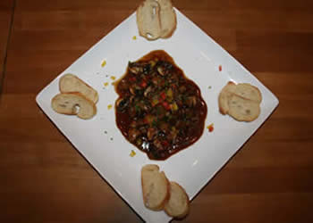 4. Add other ingredients in the order and stir gently with a wooden spoon for a minute or two. Then pour dried sac sherry before flaming