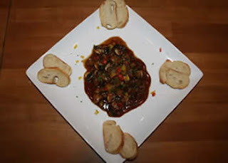 6. Garnish with chopped yellow and red bell peppers on top and serve with toasted baguette slices