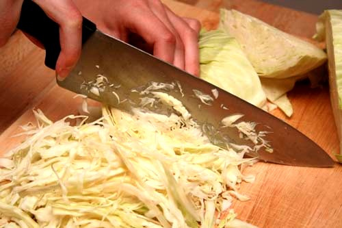 1. Finely chop up or shred cabbage and carrots
